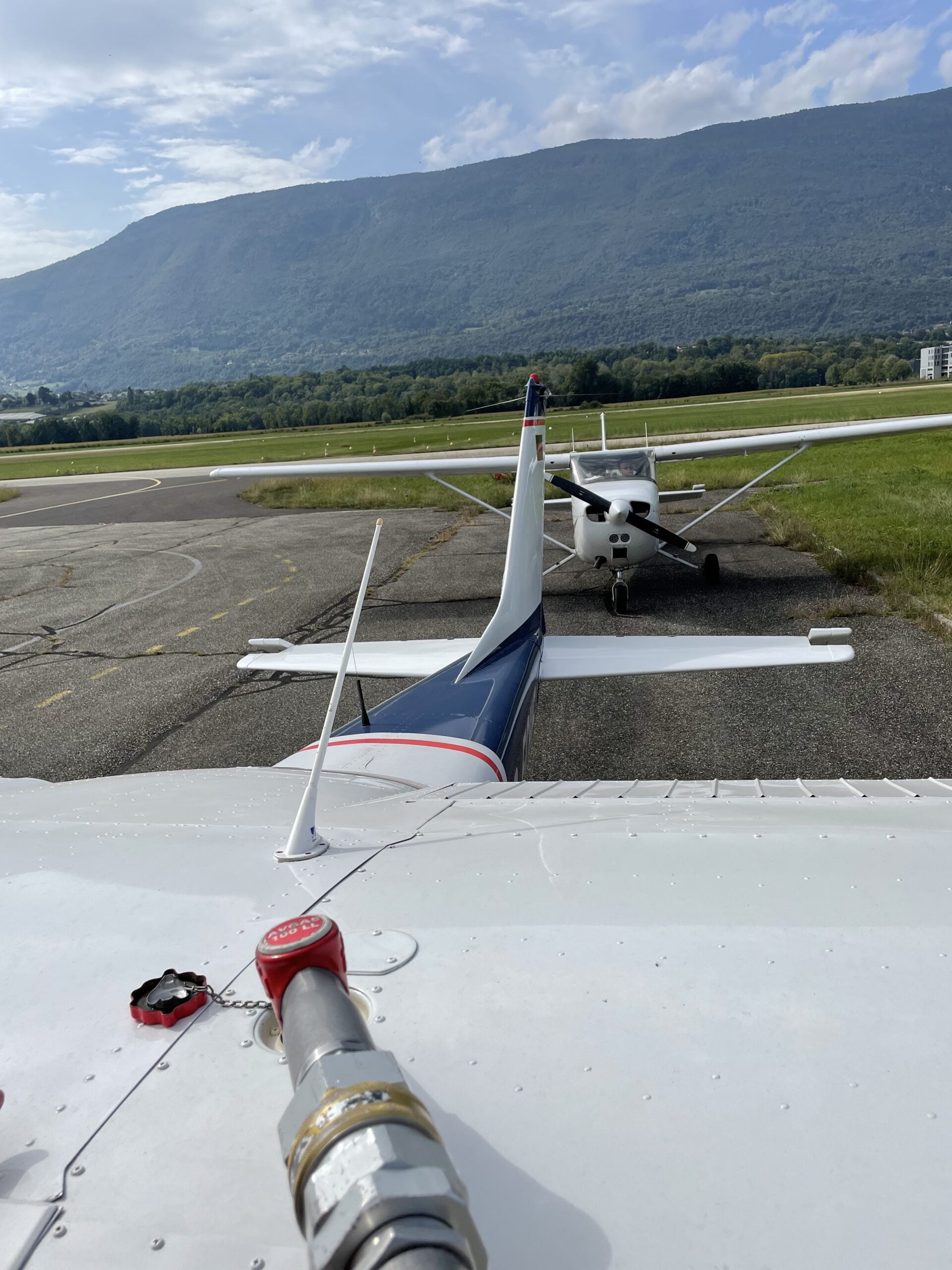 Da wir von unterschiedlichen Flugplätzen starteten, einigten wir uns auf Freiburg als Treffpunkt der gesamten Crew. Hier wollten wir entscheiden, ob die Tour am Mont Blanc entlang oder direkt über den Genfer See nach Chambery führen sollte. Während die zwei 172er von Egelsbach bei strahlendem Sonnenschein starteten, war die Piper bedingt durch Bodennebel noch ein Stündchen länger am Boden, bevor es endlich losgehen konnte. Für den großen Teil der Crew war es das erste große Flugabenteuer, umso größer die Vorfreude und die Anspannung.