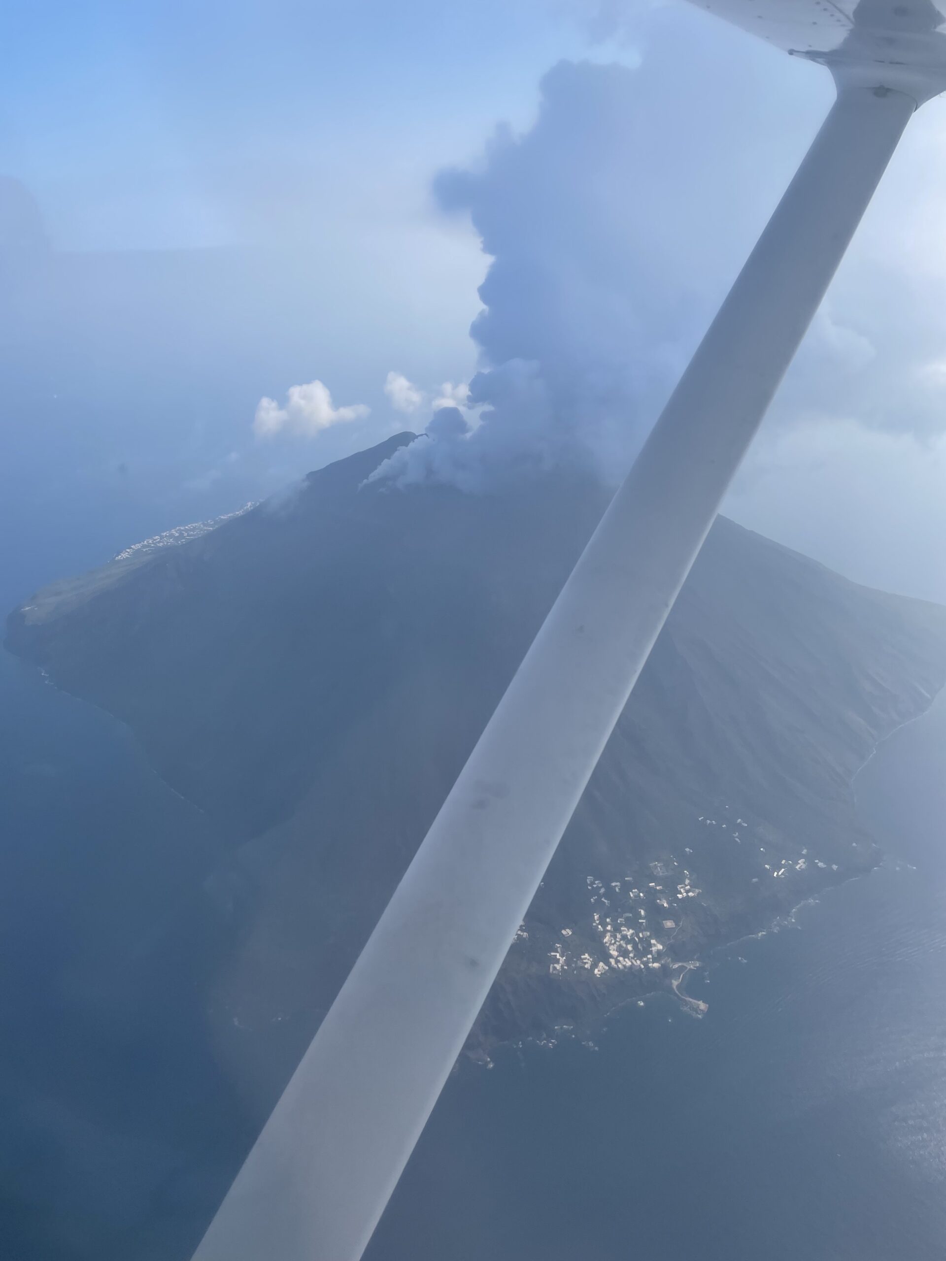 Bis Sizilien lief alles so, wie wir es geplant hatten. Das Wetter spielte „fast“ immer mit und der Wettergott war auf unserer Seite. Den Ätna hat er uns verweigert, dafür den Stromboli für kurze Zeit der Sicht preisgegen. Was für ein grandioser Anblick. Über die Liparischen Inseln führt uns die Route nach Scalea an der Westküste Italiens südl. Neapels. Die einzige Möglichkeit weit und breit Avgas zu bekommen. Dort gelandet checken wir wieder das Wetter und damit scheidet Dubrovik als unser nächstes Tagesziel aus. „Thunderstorm and Rain“ und damit für uns nicht fliegbar. Nach kurzem Studium der Karte ist unsere Wahl getroffen, wir fliegen nach Elba. Eine gute Wahl, denn der Flug führt uns an Capri und Ischia vorbei. Wie als hätte ein Riese Steinbrocken ins Meer geworfen liegen die Inseln im Sonnenschein unter uns. Man kann nur schwer den Blick abwenden, so schön sieht es aus. Der Flug ist angenehm, aber auch lange und belohnt werden wir durch einen grandiosen Anflug Elbas direkt über eine herrliche Bucht. Nach der Landung noch etwas Paperwork und dann erstmal ein wohlverdientes kaltes „Birra Moretti“.