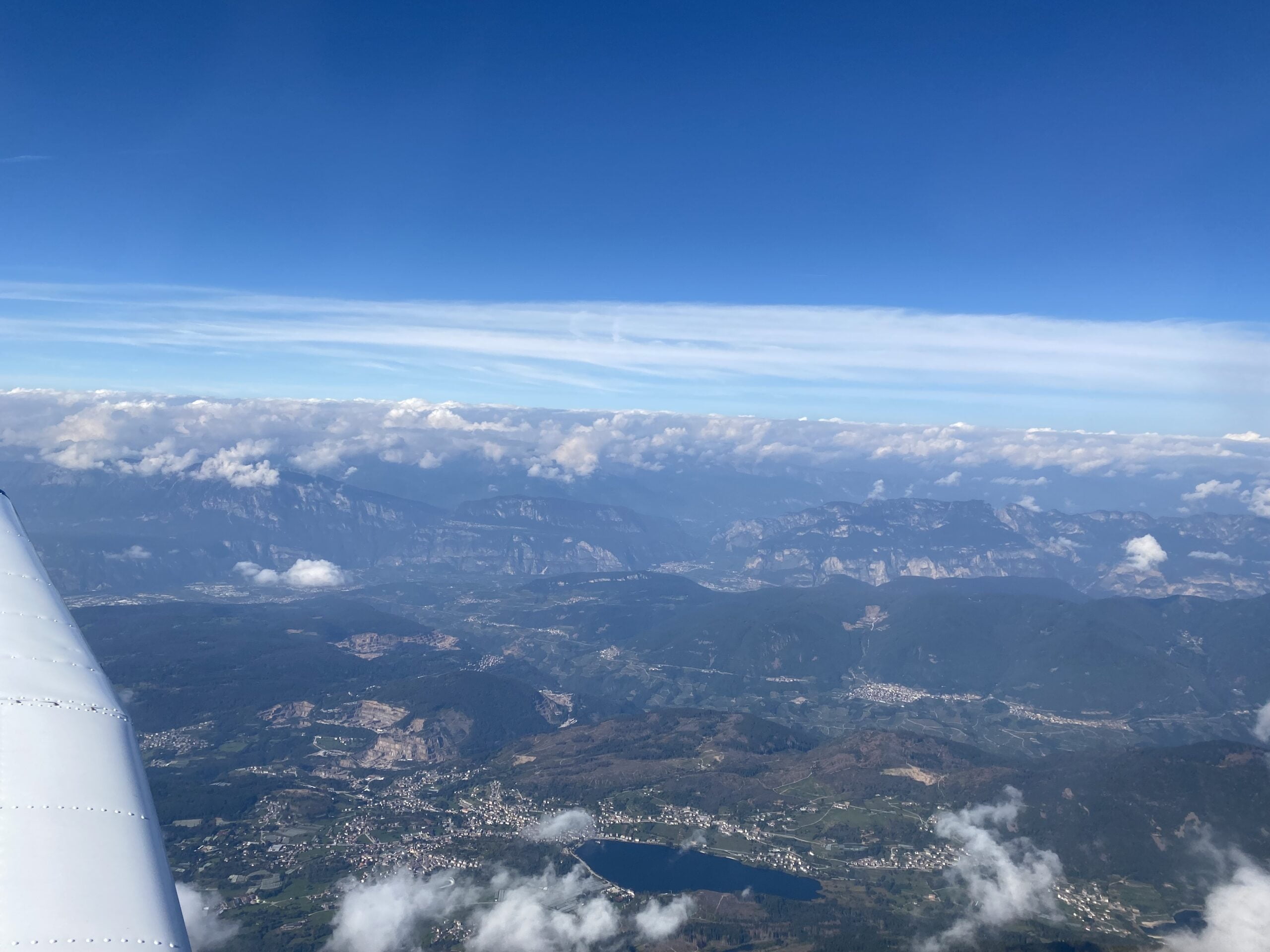 In Slowenien verbringen wir noch einen schönen Abend zusammen und am nächsten Morgen trennen sich usere Wege. Die etwas unerfahrenere Crew, zu der ich gehöre, entscheidet sich für den einfachen Weg über die Alpen, indem wir den Brenner als Pass überfliegen. Zugegeben, wenn man das erstmal die Alpen überfliegt und die Sicht durch Wolkentürme, die einem Südstau an der Alpenkette zu verdanken sind, einem manchmal Ehrfurcht einhaucht, dann ist eine Anspannung nicht zu verleugnen. Aber zu zweit auf 11000 Fuss machen alle 3 einen guten Job. Unsere Maschine fliegt uns hoch und tadellos, der Co-Pilot navigiert wie einst Kolumbus selbst und der Pilot fliegt. Ein schönes Zusammenspiel und belohnt werden wir auf dem Weg nach Hause mit einem fantastischen Blick auf die Zugspitze.