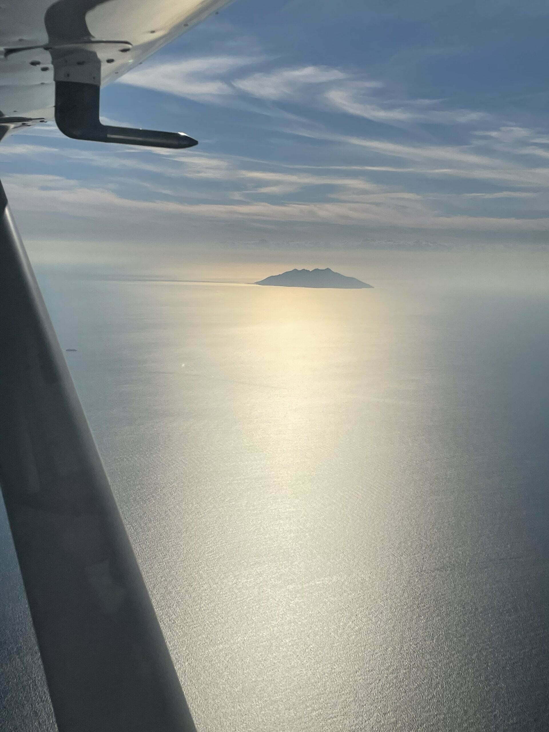 Der Flug verlief ruhig und reibungslos. Eine gewisse Zeit mussten wir auf Funk verzichten, da wir wohl außerhalb der Reichweite waren. Mit jeder Meile weiter auf dem Meer stellte sich bei mir eine Ruhe ein. Die Anspannung viel ab und ich konnte mich an dem endlosen Blau des Meeres, welches am Horizont in den Himmel überging, nicht sattsehen. Dazwischen strahlend weiße Wolkengebilde. Wie schön das doch alles ist und wie unendlich groß und erhaben. Wie klein dagegen unser Flugzeug am endlosen Himmel… . Solche Momente kann ich genießen, schließe Sie fest in meine Erinnerungen ein und kann lange davon zehren.