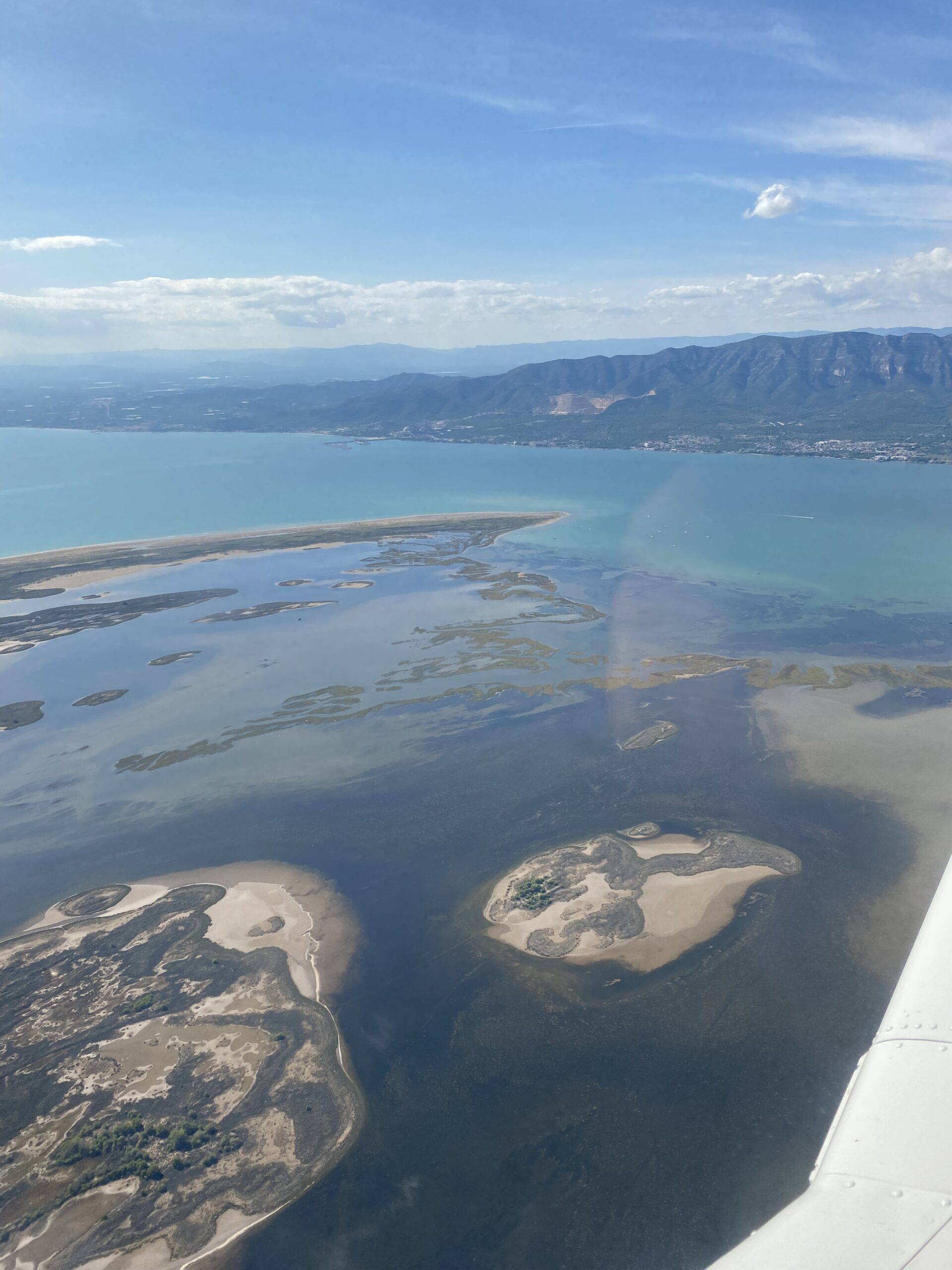 Zwei Stunden später landeten wir in Perpignan zum Tankstop, dann ging es bei teilweise diesigem, aber freundlichen Wetter über die Ausläufer der Pyrenäen an der Kontrollzone von Barcelona vorbei nach Castellon. Die letzten Meilen auf dem Meer mit Blick auf die Küste, was einen immer mit einer grandiosen Aussicht belohnt.